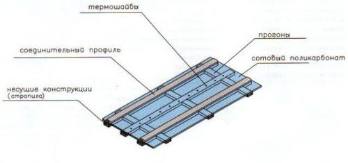 - Ensuite, il vous suffit d'installer les cadres dans le cadre et de fixer des feuilles de polycarbonate aux chevrons.