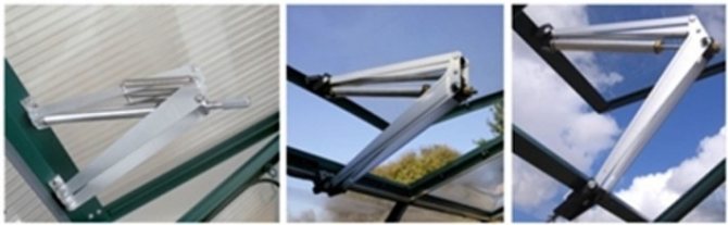Les fenêtres à double vitrage peuvent être équipées d'évents spéciaux pour la ventilation, qui sont équipés de dispositifs avec une fonction d'ouverture automatique. C'est très pratique, car les propriétaires n'ont pas toujours la possibilité de ventiler la serre à temps.