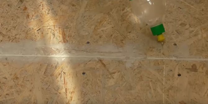 - Nous mettons une isolation thermique sur la chape préparée. Ensuite, nous attachons le ruban de montage.