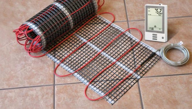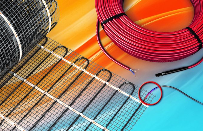 L'élément chauffant dans le plancher du câble électrique est un câble blindé à deux conducteurs de 5 mm et le système est contrôlé via le régulateur. L'appareil fonctionne à partir d'une tension de 220 W, il chauffe la surface de +25 à +32 degrés.