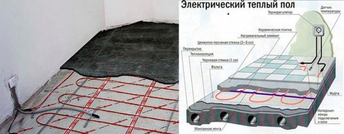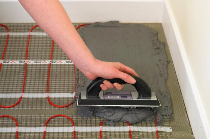 L'installation de câbles pour chauffage par le sol est réalisée lors de la création d'un nivellement grossier de la surface. De cette façon, vous pouvez économiser sur la hauteur de la pièce. L'option la plus pratique et la plus rentable est d'utiliser un tel système dans les appartements qui viennent d'être reçus par les propriétaires et il n'y a pas de réparation là-bas.