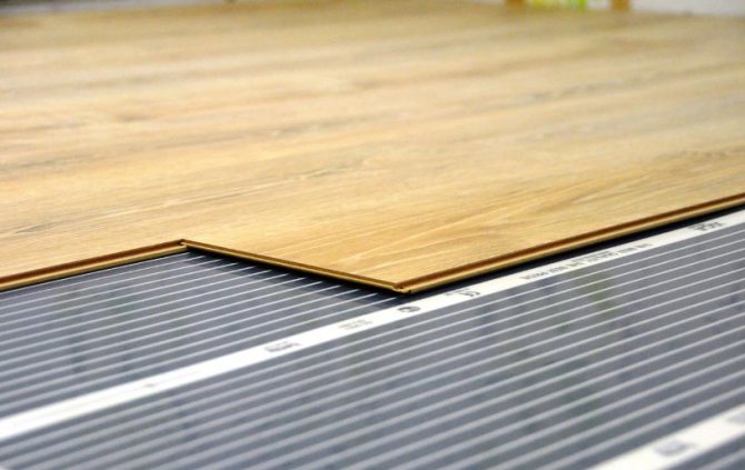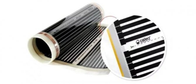 L'élément chauffant est un film mince équipé de tiges en graphite qui remplissent la fonction de chauffage. Ces conducteurs prennent le courant de l'électricité. Le chauffage au sol est uniforme et efficace. Cette conception est plus adaptée à l'agencement dans de petits espaces. Le chauffage d'une surface de plancher suffisante nécessitera beaucoup d'énergie.