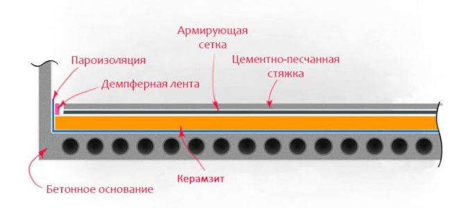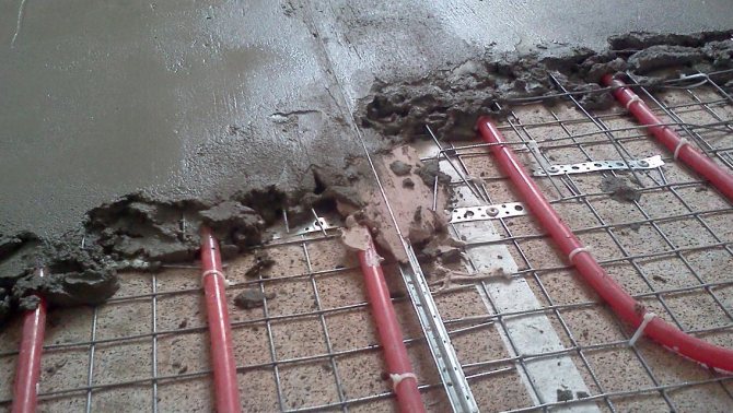 - couler une chape en béton sur un isolant thermique d'une épaisseur de 10 à 15 mm - il n'y aura pas de contact du matériau avec l'isolant et le risque de surchauffe sera minimisé;