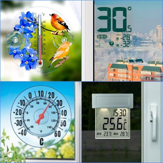 Il existe de nombreux modèles de thermomètres sur le marché parmi lesquels vous pouvez choisir pour déterminer la température à l'extérieur de la fenêtre. Les plus populaires sont les modèles liquides. Innovant - appareils électroniques, mais en raison du coût, ils ne sont pas disponibles pour tous les acheteurs. Vous pouvez les fixer de différentes manières - avec du velcro, à l'aide de vis autotaraudeuses.