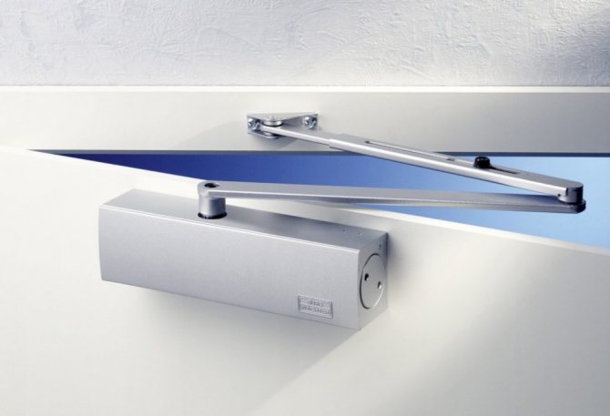 - Appareils cachés. Le corps du mécanisme est placé dans une boîte ou un vantail de porte. L'installation de ce type de ferme-porte nécessite une approche professionnelle (expérience pratique, outillage spécial). Ils sont montés uniquement sur des portes dont les vantaux ont une épaisseur d'au moins 40 mm.