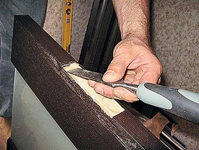 Il est conseillé de couper les boucles avec une toupie, car l'outil peut sélectionner avec précision l'évidement. Des burins ou un échantillonnage supplémentaire sont obtenus à partir du burin. La profondeur est réduite avec des tampons en carton, mais ils se détériorent avec le temps. La porte commence à vaciller et à s'affaisser.