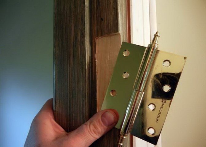 À la fin du marquage, ils commencent à installer les charnières de la porte, mais déterminent d'abord la présence de nuances supplémentaires. Le principal problème peut être le poids important de la toile. Les portes intérieures sont généralement creuses et légères. Si le châssis est en chêne massif ou autre bois lourd, deux charnières ne le supporteront pas. La solution consiste à insérer le troisième élément au centre de la toile. Ensuite, les boucles supérieure et inférieure peuvent être rapprochées du bord.