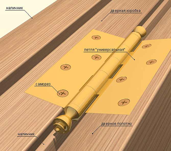 Il est monté de différentes manières, selon le type de raccords. L'installation de charnières universelles nécessite une analyse distincte, principalement elles sont fixées aux portes intérieures. Trois options pour la réalisation des travaux :