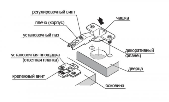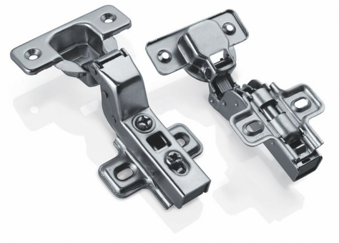 - Italien. Le matériel diffère des charnières cachées dans la conception de la charnière. Le mécanisme est installé sur des portes importées coûteuses.