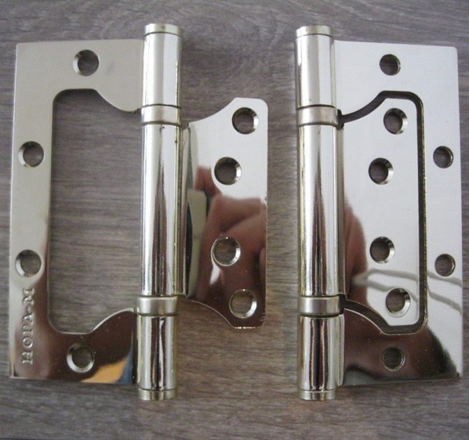 La découpe des charnières de porte à barreaux s'effectue différemment en raison de la conception. Le produit se compose de deux abris de printemps. Le châssis peut s'ouvrir dans n'importe quelle direction avec un retour ultérieur à sa place d'origine.