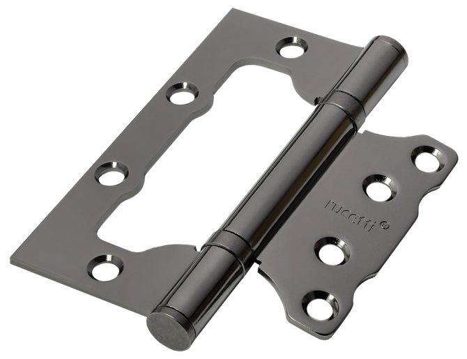 - Visser. La conception des charnières est un axe de pivot avec des goujons soudés sur le côté au lieu de plaques de fixation. Conçu pour les toiles légères.