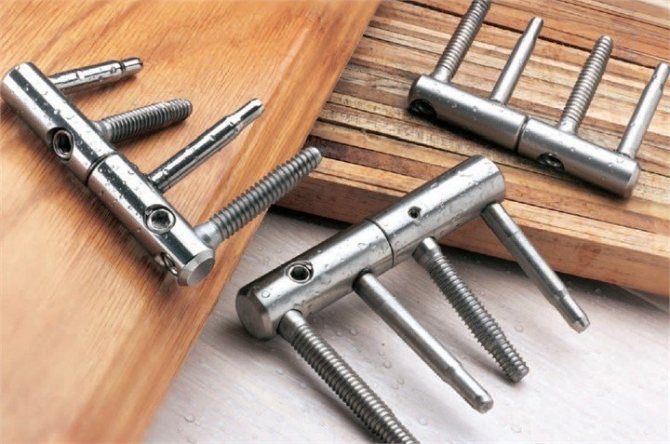 - Visser. Les raccords ont des goupilles au lieu de plaques de fixation. Lors de l'installation, ces goupilles sont vissées dans le corps du bloc de porte.