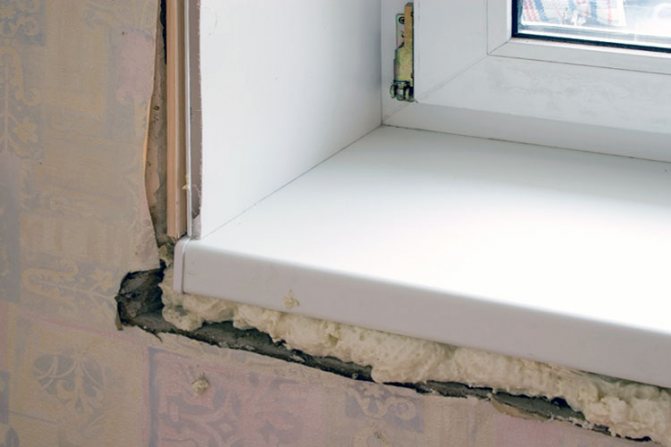 Le rebord de la fenêtre est fixé à de la mousse, qui remplit tous les vides. C'est un excellent isolant thermique, il colle bien la surface plastique avec les pentes et la base en béton. Il vous suffit de prendre soin d'une isolation hydraulique et thermique de haute qualité: cela exclura la formation de condensation, qui peut ensuite couler et gâcher la finition, obligeant le propriétaire à effectuer des réparations coûteuses.