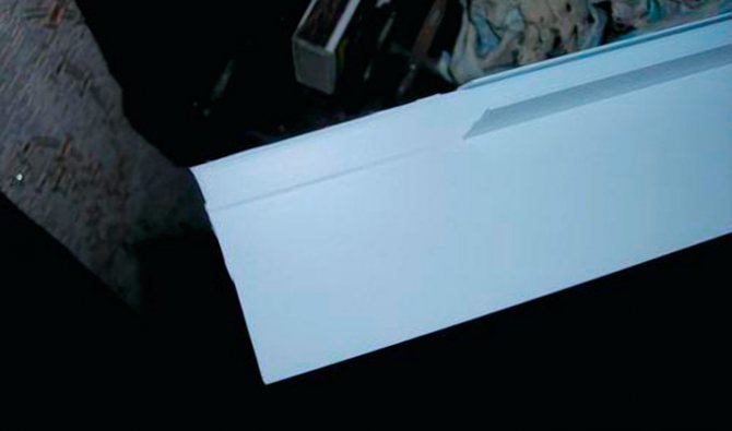 - Insérez la pente en plastique dans l'espace fait au tout début du travail, puis fixez-la avec de petits goujons. Si vous souhaitez couper vous-même les pentes en plastique de vos propres mains, vous devez prendre une feuille du panneau sandwich et prendre les mesures appropriées (de l'évidement lui-même au loquet sur le profil, soustraire 5-7 mm et couper un rectangle du panneau sandwich par les mesures). Ensuite, vous devez fixer la pente en plastique en la clouant sur le rail installé. Les mesures sont faites pour les panneaux latéraux, découpés, insérés et fixés comme celui du haut.