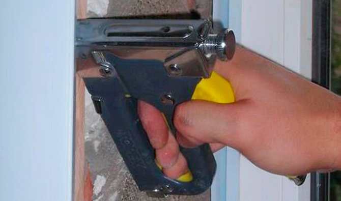 - Installez le profil. Il est nécessaire pour soutenir les pentes en plastique qui viendront buter contre lui. Il peut être trouvé dans absolument n'importe quel marché de la construction avec les coins. Si nous parlons de coins, vous devriez en choisir des encliquetables. Ils agrippent beaucoup plus fermement que leurs cousins - coller les coins. Ensuite, vous devez mesurer la distance en haut des fenêtres entre le rail gauche et le rail droit pour fixer la pente supérieure. Après cela, vous devez couper le profil exactement autant que cela a été obtenu dans les résultats lors des mesures, puis le diriger avec un loquet vers vous. Ensuite, vous devez le fixer au rail supérieur et le déplacer à l'intérieur de la fenêtre d'environ 1 cm, après quoi vous devez attacher le profil au rail avec une agrafeuse (tous les 6-7 cm). La même chose est vraie pour les rails latéraux.