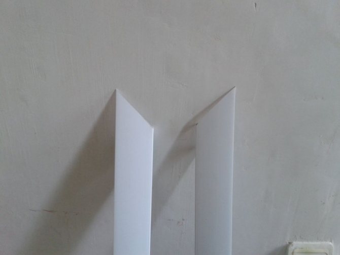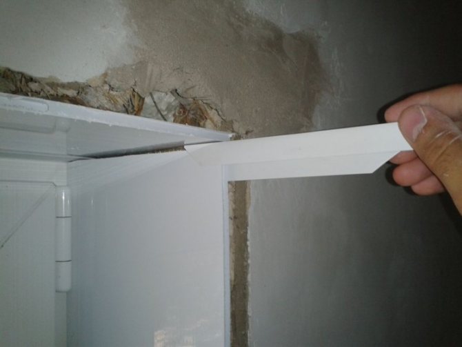 - Vous devez prendre un couteau ou un crochet et faire un petit creux dans la mousse.Il peut mesurer 1 à 1,5 cm de large et sert à y insérer ensuite une pente en plastique prête à l'emploi ou à fabriquer soi-même, puis prenez un ruban à mesurer et mesurez la taille de l'ouverture le long du bord extérieur (largeur sur le schéma). Les données obtenues sont nécessaires pour découper la pièce souhaitée à partir du rail pré-préparé. Ensuite, vous devez attacher le rail résultant au bon endroit et le fixer avec un perforateur. N'oubliez pas non plus qu'il doit courir le long du bord du mur.