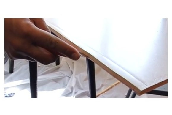 Pour faire une épine, le panneau sandwich est d'abord coupé avec un couteau à papier peint en travers