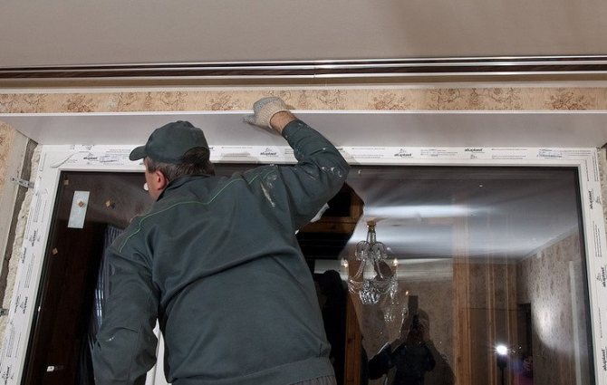 - Appliquer du ruban de masquage sur tout le périmètre des joints entre la structure de la fenêtre et l'ouverture, de sorte qu'à l'avenir, le profilé ne se salisse pas à cause du plâtrage et que le mélange lui-même ne dépasse pas la pente;