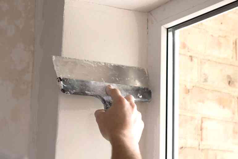 - Mettre du mastic sur le plâtre séché, puis lisser la surface avec une truelle;
