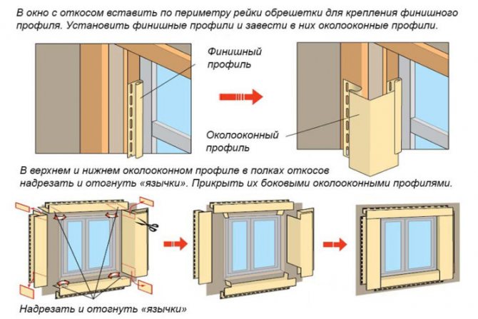 La distance entre le cadre de fenêtre de support et l'environnement externe est 2-3,5 fois inférieure à la distance entre le substrat et l'espace interne. Néanmoins, la partie extérieure de l'ouverture de la fenêtre convient pour la finition. Dans ce cas, les éléments suivants sont utilisés: