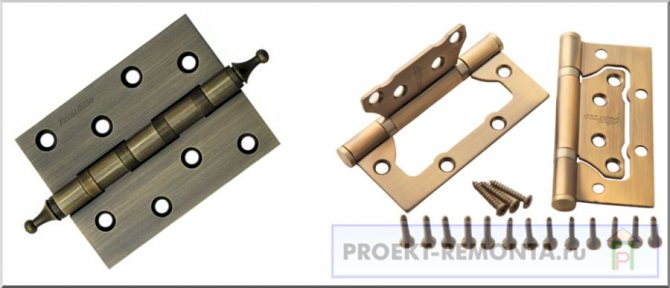 - Les charnières papillon ont une apparence intéressante: un peu vintage, mais très élégante, et donnant une saveur unique à n'importe quelle porte.