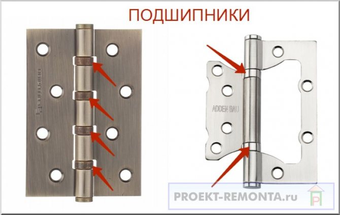 - Nombre. Dans la plupart des cas, deux charnières suffisent, cependant, en fonction des paramètres de la porte (poids et hauteur), le nombre de ferrures peut varier de deux à cinq charnières, qui sont installées uniformément sur toute la longueur de la surface.