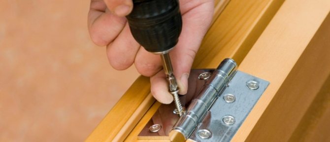 L'installation des charnières est effectuée dans un endroit sûr sur la porte, où se trouve une poutre en bois. Si cela est fait ailleurs, vous ne pouvez que gâcher le vantail de la porte et à l'avenir, il sera nécessaire de le remplacer.
