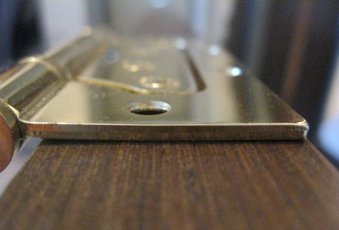 Avec une installation correcte, les trous de la petite partie du papillon seront situés presque au centre du vantail de la porte, ce qui signifie que vous ne devriez pas avoir peur des fissures ou des distorsions.