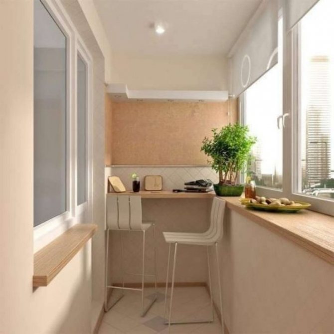 Un rebord de fenêtre servant de table est le plus souvent appelé type combiné. Certes, il peut aussi être standard. Cela dépend en grande partie de la façon dont vous l'installez. Par exemple, si le plateau de la table est situé le long du périmètre de la loggia, il peut être attribué à un groupe rectangulaire. Les comptoirs situés uniquement aux extrémités sont considérés comme des plans de conception.