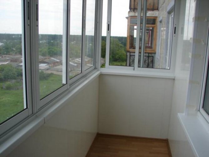 - La conception du vitrage extérieur, s'étendant vers l'extérieur au-delà du périmètre du parapet du balcon, vous permet d'installer un large rebord de fenêtre (jusqu'à 40 cm) et en même temps de ne pas occuper la surface utilisable de la pièce.