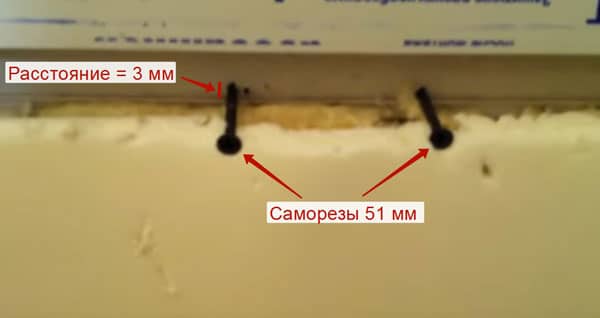 Visser des vis autotaraudeuses de 51 mm dans le cadre en plastique à une distance de 3 mm du bord inférieur du profilé de support spécial.