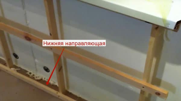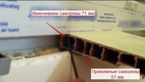 Sur la partie inférieure de la planche en plastique, fixez le rail supérieur à partir d'une barre de 40 mm de large. Fixez-le avec des vis autotaraudeuses de 51 mm. La distance entre le "bec" du rebord de la fenêtre et le rail supérieur est de 8 mm. Cette distance est nécessaire pour l'installation des panneaux de bardage.
