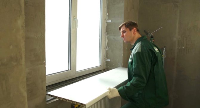 À ce stade, gardez à l'esprit que la distance entre les pentes doit être inférieure à la longueur du rebord de la fenêtre. Il devrait entrer dans les pentes à une distance de quelques centimètres. La saillie du seuil ne doit pas dépasser 5 cm, puis l'air de la batterie peut monter vers la fenêtre, ce qui garantira l'absence de condensation.