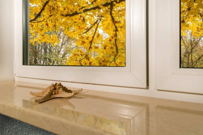 Le rebord de la fenêtre est considéré comme une alternative valable au matériau naturel. en pierre artificielle... Il est fait d'acrylique et n'est pas inférieur à son homologue naturel en termes de beauté, de résistance à la chaleur et de résistance. Un avantage supplémentaire d'un appui de fenêtre en pierre acrylique est que la surface n'est pas rayée et que le produit lui-même est beaucoup moins cher.