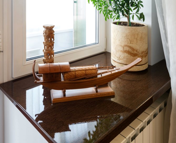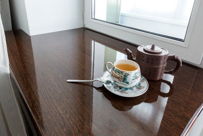 Important! Un rebord de fenêtre en plastique peut se déformer lorsqu'il est exposé à des températures élevées, de sorte qu'une bouilloire ou une casserole chaude ne doit pas être placée sur la surface.