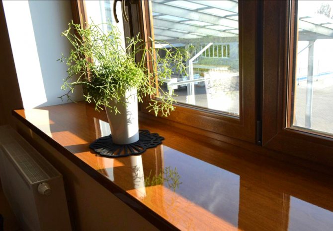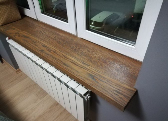 L'installation à faire soi-même d'un rebord de fenêtre en bois commence par un séchage et un traitement complets du matériau vernis et composition antiseptique.