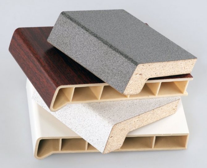 Les appuis de fenêtre en aggloméré et en panneaux MDF restent une option plus économique par rapport aux produits en bois. De nombreux fabricants fabriquent des panneaux de seuil à partir de panneaux de fibres et de panneaux de particules. D'en haut, ces modèles sont recouverts d'un film spécial.