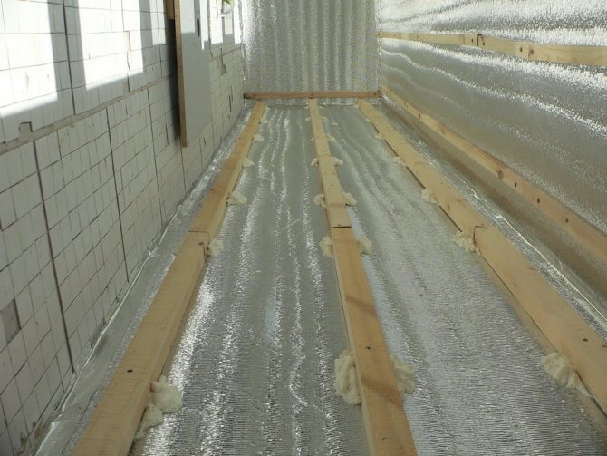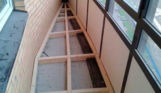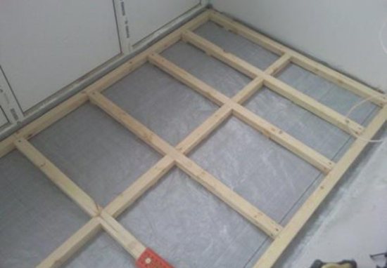 Pour effectuer l'isolation de la vapeur sur cette section de la loggia, ils ont mis une caisse à lattes. Après cela, un pare-vapeur est placé. Les planches ou le contreplaqué serviront de surface au sol. Au-dessus d'eux, le linoléum ou le stratifié devraient fluer. Dans ce dernier cas, un support en polyuréthane mince supplémentaire est nécessaire.