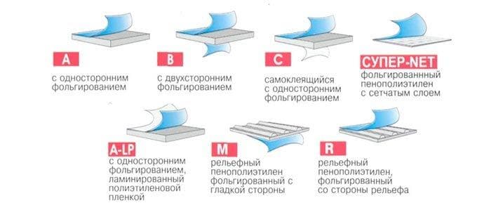 Lors de la réalisation de travaux sur l'isolation de la loggia, vous pouvez utiliser plusieurs types de penofol, qui sont indiqués par des index de lettres: