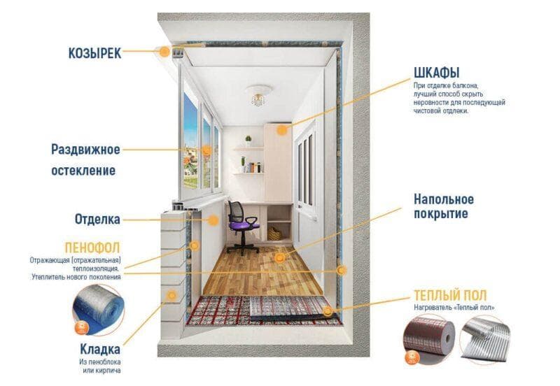 En général, l'isolation thermique d'une loggia ou d'un balcon, comme mentionné ci-dessus, comprend des étapes telles que: