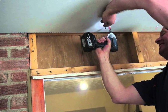 Sur la longueur du plan du plafond, en se concentrant sur la ligne tracée autour du périmètre, les lattes ou le bois sont fixes. Pour cela, des trous sont réalisés avec un perforateur d'un pas de 60 centimètres et des chevilles en nylon d'un diamètre de 8 millimètres y sont enfoncées avec un marteau.