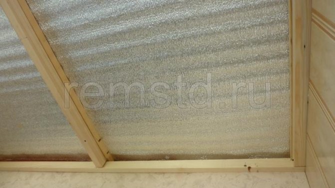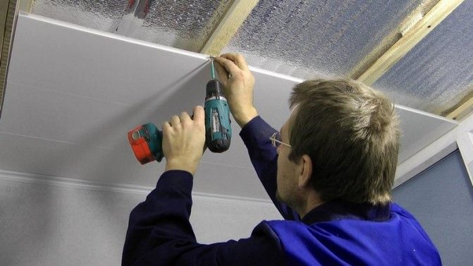 Important! La mousse de polystyrène expansé est utilisée exclusivement comme isolant intermédiaire entre les bardages rigides - tels que les cloisons sèches, les panneaux MDF ou PVC, les doublures ou les plafonds à lattes - et la surface du plafond principal.