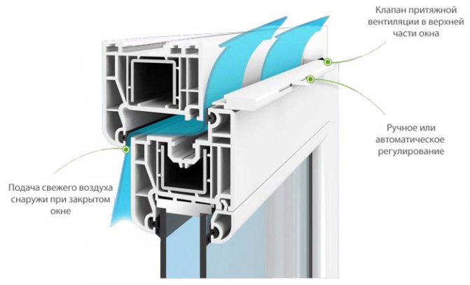 La ventilation des fenêtres en plastique n'a pas d'importance pour les nouvelles maisons, car le système d'alimentation et d'échappement ne fonctionne pas à travers les cadres de fenêtres. Dans les bâtiments anciens, les fenêtres en plastique doivent être adaptées à l'apport d'air supplémentaire de la rue.