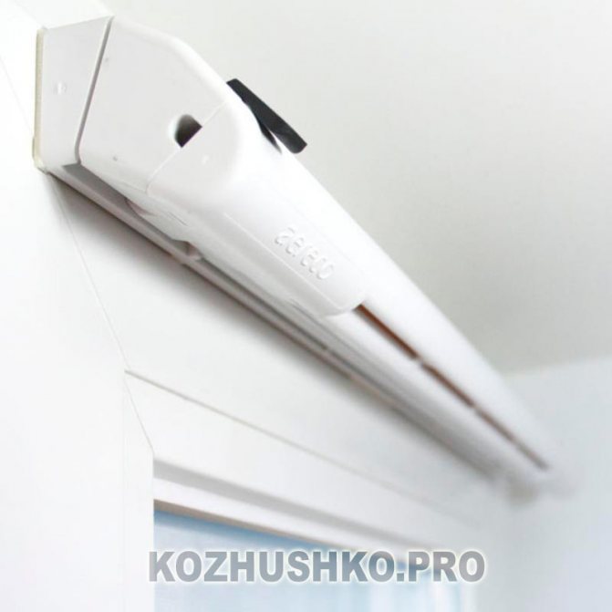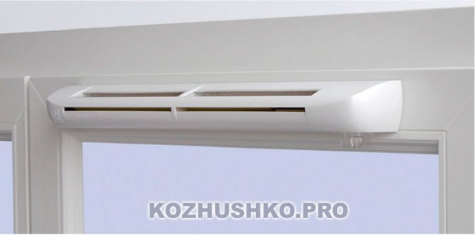Le modèle à fente est installé sur des portes de balcon ou sur des châssis au-dessus du profilé PVC existant. La ventilation est effectuée par des trous de 170 à 400 mm de long. et une largeur de 12-16 mm. Il existe des options en une ou deux pièces - dans ce dernier, un bloc est monté à l'extérieur et l'autre à l'intérieur de la fenêtre. Avantages caractéristiques - l'installation peut être effectuée sans démonter les fenêtres, le débit est requis élevé. - Construit en