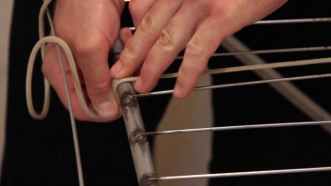 Le travail commence par le choix du cadre et du type de tissu, après quoi vous pouvez prendre l'outil. Il est nécessaire de pré-ajuster la longueur des cordes afin qu'elles ne s'affaissent pas même aux pics de charge.
