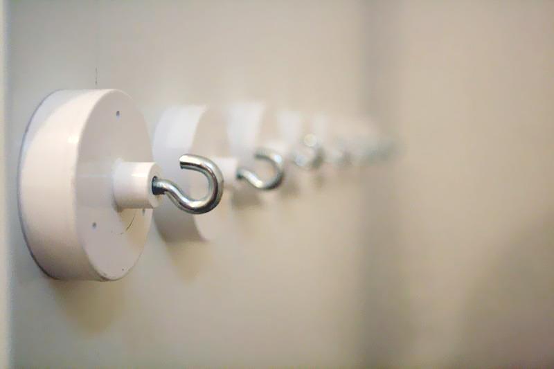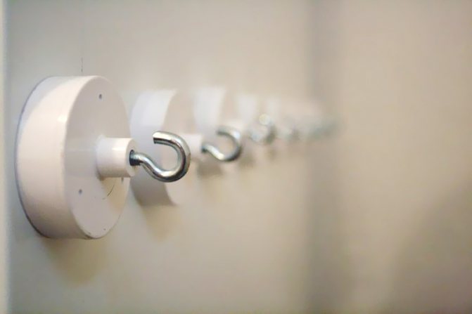 L'option traditionnelle, mais pas très jolie, est des planches de bois avec des clous incurvés fixés dessus. Des accessoires plus attrayants sont des crochets de corde spéciaux, qui peuvent être trouvés dans le magasin.
