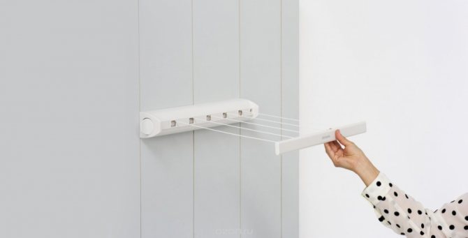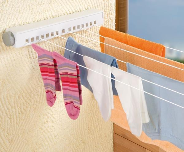 Pour sécher facilement, à un prix abordable et à moindre coût le linge lavé, il est recommandé de tirer la corde à linge sur le balcon avec un support mural. Il s'agit d'un appareil discret dont il est difficile de se passer.
