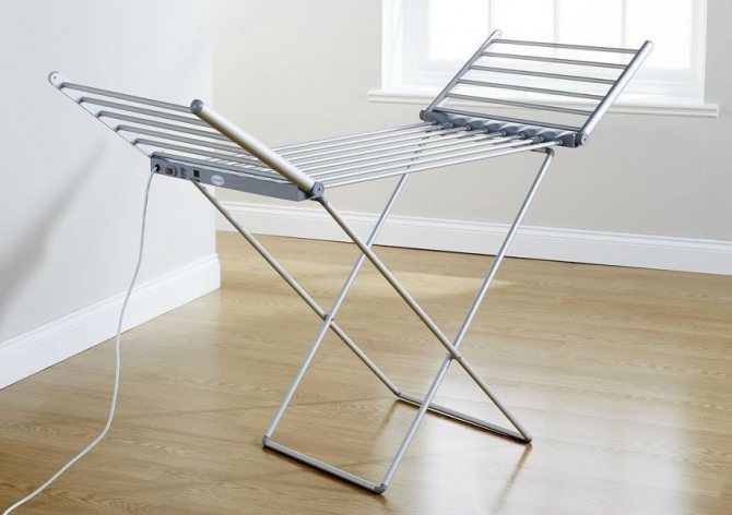 Dans tout magasin plus ou moins grand, il existe des modèles avec pieds pliants et côtés rabattables. De plus, il existe à la fois des modèles simples et un chauffage électrique. Dans ce cas, un élément chauffant de faible puissance est intégré dans les tubes sur lesquels le linge est suspendu. Si le tube est touché pendant que l'appareil de chauffage est en marche, il sera agréablement chaud au toucher, mais pas chaud, de sorte qu'il n'endommagera pas même les tissus les plus délicats.