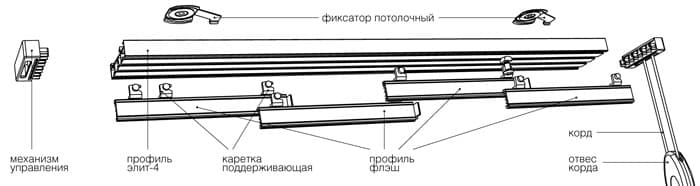 Le profil lui-même comprend plusieurs guides - un pour chaque panneau. Leur nombre varie généralement de 2 à 5.