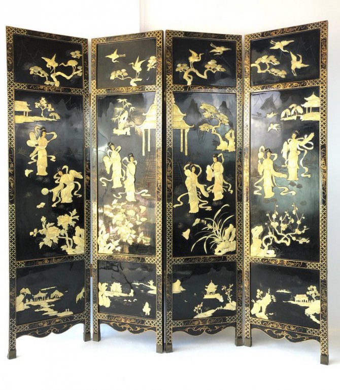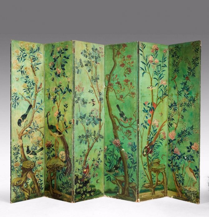 Le luxe est essentiel pour les intérieurs classiques. Les tissus idéaux sont le velours, le satin, le velours; les franges sont utilisées pour la décoration, les crochets en cordon d'or, les lambrequins, les pinceaux volumineux. Moderne signifie des textiles fabriqués dans une couleur noble et profonde, par exemple, un décor sobre sous la forme d'un ornement floral. Cette pièce d'accent conviendra parfaitement comme séparateur de salon.
